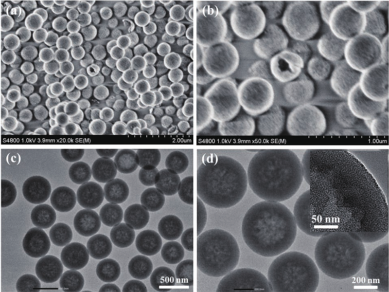 ① Gleichmäßige Partikelgrößenverteilung, Hohlstruktur, hohe spezifische Oberfläche, großes Porenvolumen, schmale Porengrößenverteilung und einstellbare Hohlraumvolumengröße; ② Die Oberfläche ist anfällig für organische Agglomeration und Modifikation; ③ Gute Biokompatibilität und gute Dispergierbarkeit in Wasser und Ethanol; ④ Die Schale besteht aus mesoporöser Kieselsäure und hat breite Anwendungsaussichten in Adsorption, Katalyse, Medikamententrägern, Mikroreaktoren und anderen Bereichen.